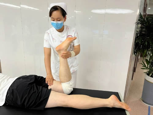 3、床边垂腿训练:患者坐于床边,双脚离地,患腿在下,健腿在上辅助患腿向后弯曲,弯曲至感到疼痛保持五秒,随后放松,每日2组,每组10次。4、俯卧位屈膝训练:身体俯卧,下肢伸直,弯曲膝盖,将足跟靠近大腿,要注意大腿不能离开床面,维持五秒钟后缓慢复位,每日3-5组,每组10次。