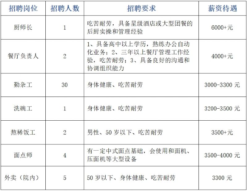 根据工作需要,现面向社会发布后勤工作岗位,具体信息如下: