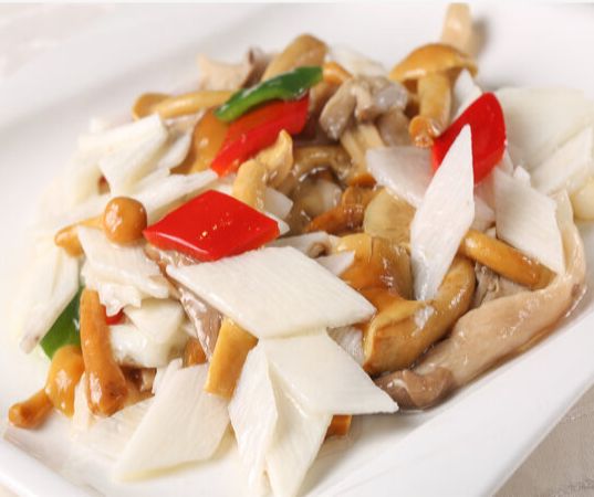 制作方法:先将蘑菇洗净,再用热水泡约10分钟至变软,泡菇水备用,同时将山药洗净去皮切小片,芹菜洗净,也切成相同大小的段。炒锅烧热放人油,油热后,依序加入蘑菇、山药、芹菜炒熟,接着倒人泡菇水,待汤汁略收干后,用适量水淀粉勾芡,再加人适量酱油、盐、味精调味即可。