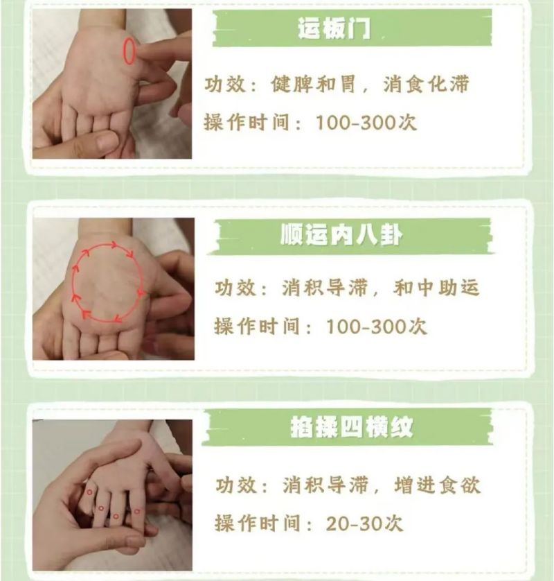 选穴:运用清脾胃、清板门、逆八卦、四缝、退六腑、清大肠、中脘、揉腹、捏脊等推拿手法,可有效消食导滞,恢复脾胃正常运化功能,从而改善便秘情况。