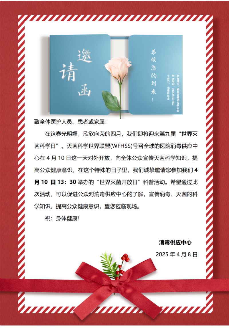 仿佛一夜之间春风拂面,千树万树梨花竞相绽放,在这个万物复苏、春意浓浓的四月,延安大学咸阳医院消毒供应中心以“灭菌责任践于行,供应文化永传承”为主题,于2025年4月10日,成功举办第九届“世界灭菌科学日”开放日活动。通过“知识科普、实地探秘、沉浸体验”三大板块,向医学生及社会公众揭开医疗灭菌的“生命防线”。
