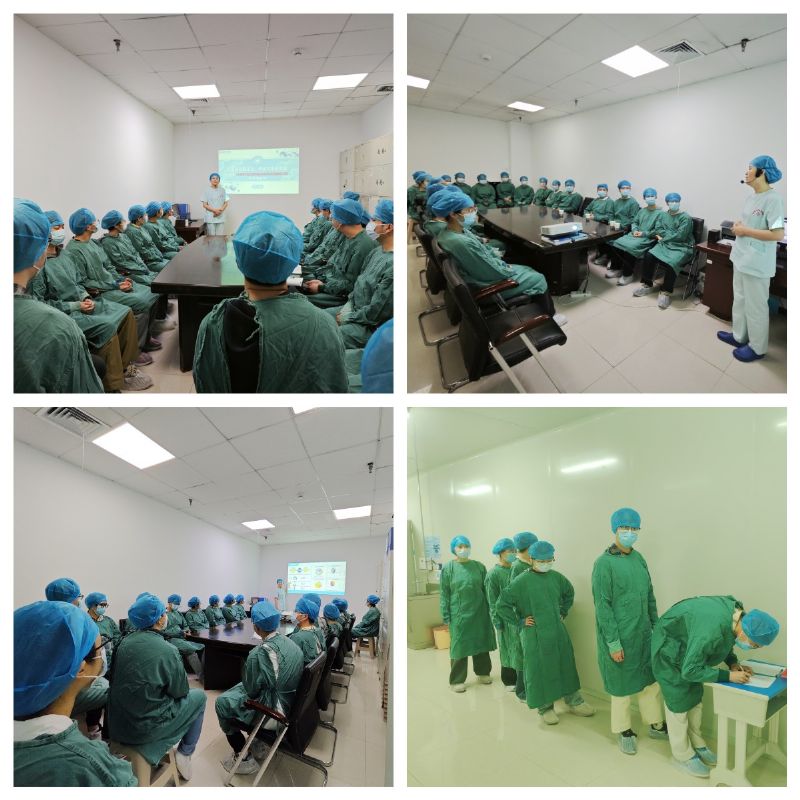 经过紧张而有序的筹备,下午13:30活动正式开始。访客们陆续抵达,接待人员为他们分发了参观衣、帽子和鞋套。客人们迅速穿戴完毕,迫不及待地想要探索这个充满神秘的领域。所有人进入会议室后,消毒供应中心护士长介绍了活动的目的、流程以及消毒供应中心的重要性,同时化身为“知识使者”,利用精心准备的PPT,以生动形象的方式深入浅出地讲解了消毒与灭菌的相关知识,并对我院消毒供应中心的工作流程进行了简明扼要的介绍,特别强调了使用后器械、物品等的预处理重要性以及灭菌过程中严格的质量控制标准,让每一位听众都沉浸其中,对灭菌科学有了更深入、更全面的理解。