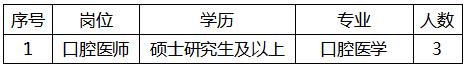 因延安大学咸阳医院成立口腔病院,现面向社会招聘以下口腔医师三名,具体要求如下: