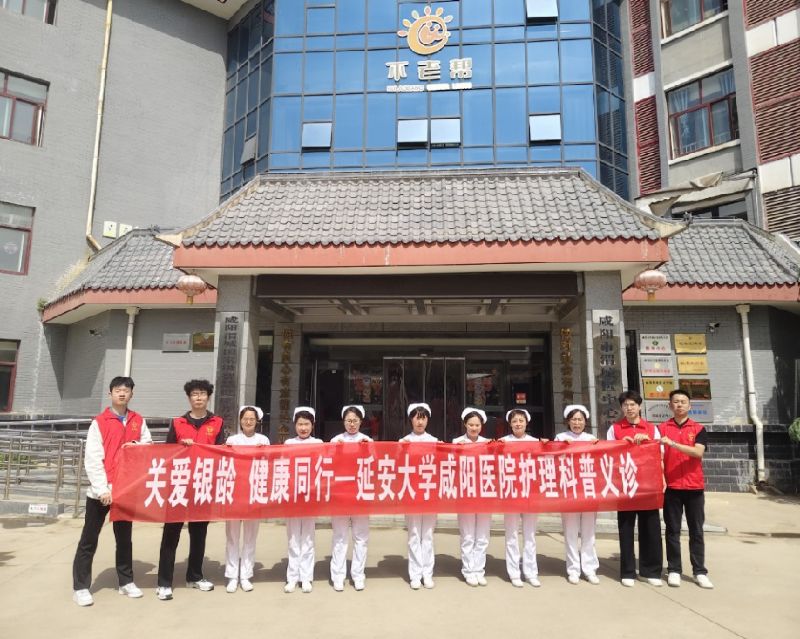 在2025年护士节来临之际,为积极响应“关爱护士队伍,守护人民健康”的主题,延安大学咸阳医院临床护理专业委员会的专科护士与志愿者们,于5月7日上午走进咸阳市渭城区不老帮养老院,开展了一场主题为“关爱银龄,健康同行”的护理科普义诊活动。此次活动旨在提升老年人的健康意识,强化他们的自我防护能力,满足人民群众对多样化、多层次和高品质护理服务的需求。
