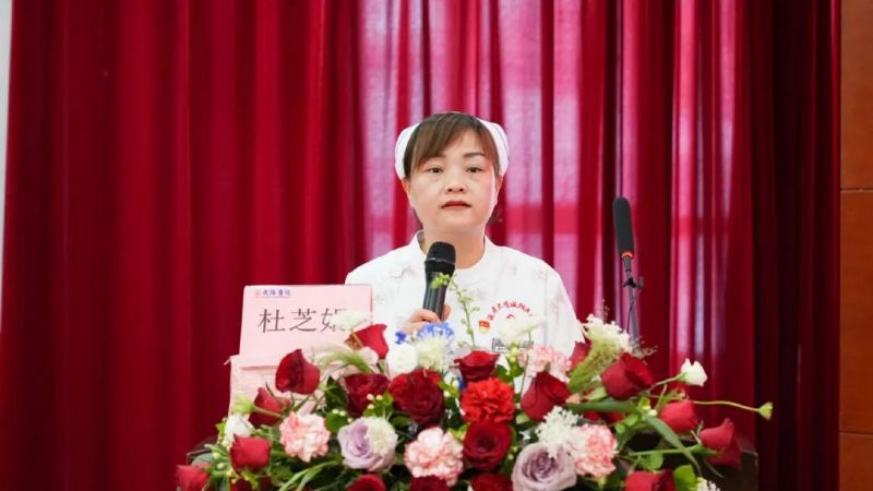 我院优秀护士代表王津发言:她用“温度、敬畏、未来”为关键词分享自己在工作中用叙事护理为路径传递人文关怀,治愈心灵;在生死较量中坚守职业敬畏,守护生命尊严;于科技浪潮里精进专业、呼吁全院护士做有根的“提灯人”。优秀护士长代表杜芝娟倡议全院护士始终坚守初心,深化"以患者为中心"理念,用专业与温度守护生命;潜心精进技能,提升精准照护能力;携手协同创新,以"全院一盘棋"的担当推动医院高质量发展;赓续传承奋进,在"三甲复审"中展现团结实干精神。