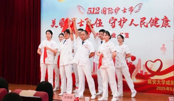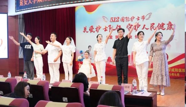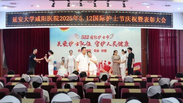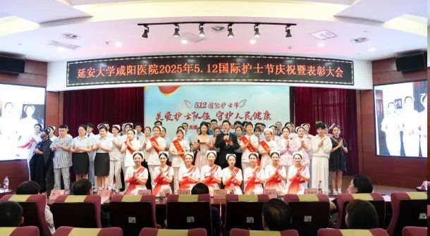 在第114个国际护士节到来之际,延安大学咸阳医院于2025年5月8日下午在脑血管病院第三学术厅隆重举办主题为“关爱护士队伍,守护人民健康”的护士节活动。精诚医疗集团董事局主席兼延安大学咸阳医院董事长李卫军、延安大学咸阳医院院长姚晓峰、常务副院长吴栋梁及院领导班子成员、各职能部门负责人、全院护士长及受表彰的优秀护士、优质护理服务先进集体与个人、临床护理优秀教学集体及优秀带教老师,全院护士代表370余人参会,共同致敬新时代南丁格尔精神的践行者。