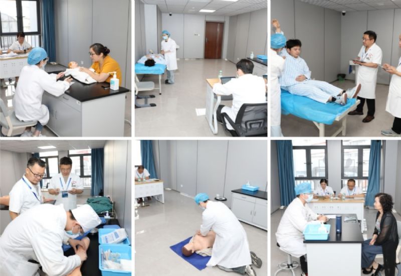 临床基本技能操作考试在我院临床技能培训中心五楼OSCE考站进行,主要考查病史采集、体格检查和基本操作技能,同时对沟通交流能力与人文关怀进行评价。技能操作采用OSCE多站考核,每组6站,分为两组,共12站同时进行。负责人前期在考试物资筹备、考官培训、考务安排、标准化病人和志愿者培训、考试模拟演练等方面做了大量工作,确保了技能考试的顺利完成。考试期间,考官严肃认真,考务人员细心周到,各环节衔接顺畅,技能操作考试圆满完成。本次测试是我院第三次承接临床医学专业国家级考试,相较于2023年首次开展此项工作,我们本次的经验更加丰富,相关细节更加完善,考试现场更加高效,这标志着我院不仅有资格承接国家级考试,更说明我院有能力做好国家级考试。