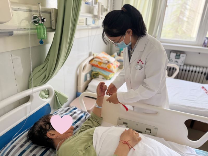 “七彩丝线缠香囊,祝福裹满暖心房”。护士们小心翼翼的将精心准备的五彩绳系在患者的手腕时,满满的关心与祝福凝结成一股力量,有感动、有关爱、更有支持。这小小的彩绳,不仅为病房增添了节日的喜庆色彩,更承载着对患者的美好祝愿,希望他们的好运能在端午节接“粽”而来,同时也让大家深切领略到传统民族文化的独特魅力。