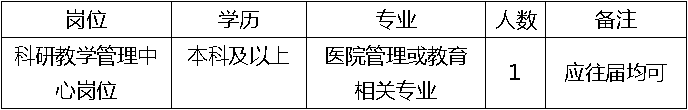 根据医院发展需要,延安大学咸阳医院现面向社会招聘科研教学管理中心工作人员一名,具体要求如下: