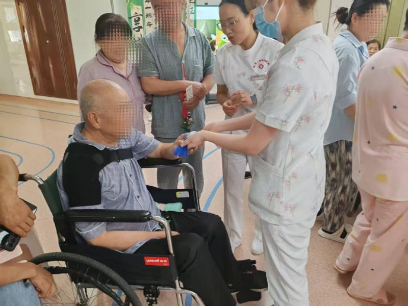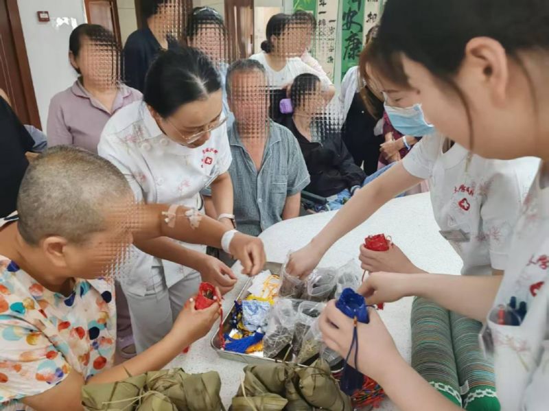 活动最后,科室护士长及主任到患者床头为每一位患者发粽子及彩绳。伴随着节日的欢声笑语,本次端午活动进入尾声。