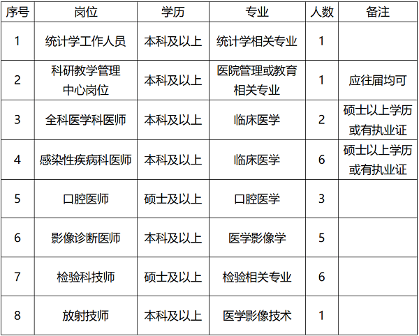 根据医院发展需要,延安大学咸阳医院现面向社会招聘各专业工作人员,具体要求如下: