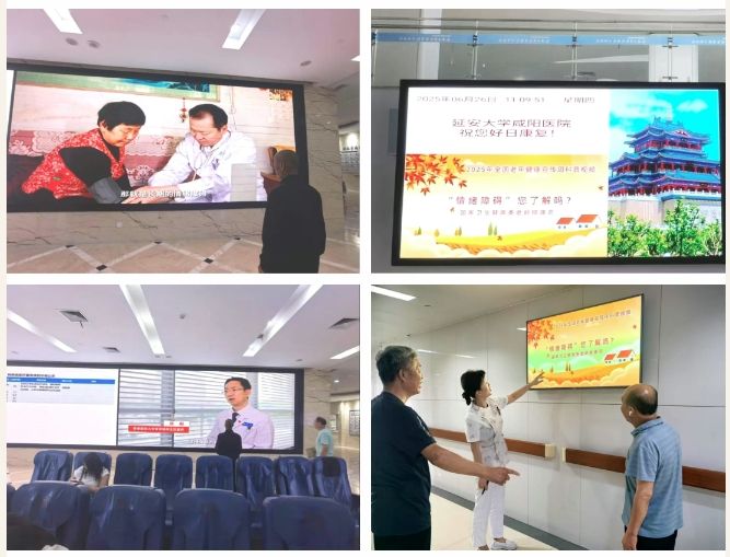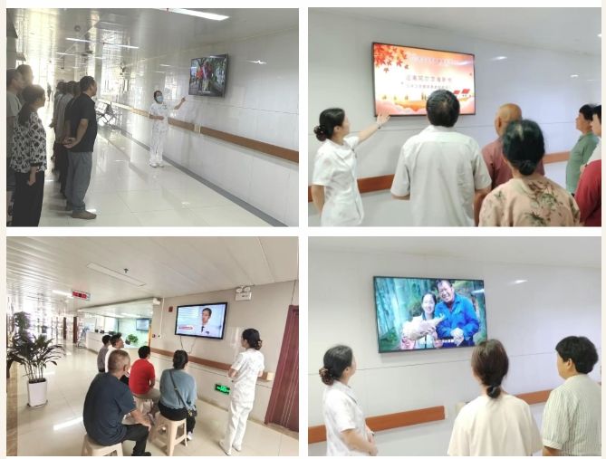 同时,在各病区组织的患者座谈会上,医护人员特别设置"视频学习+互动答疑"环节,循环播放科普视频后,针对老年患者常见的健康疑问展开现场解答。通过多维度、全覆盖的展播形式,真正实现了健康知识"抬头可见、随时可学",让老年健康理念深入每一位患者心中。