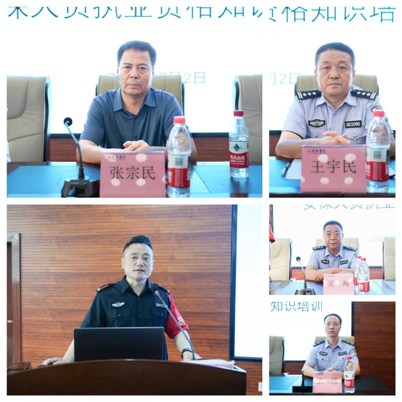 院长助理张宗民出席了本次活动,保障部副部长兼保卫科科长寇东亮主持活动议程,经文保大队副大队长王宇民、巡特警大队教导员吴海、治安大队特行中队中队长袁一博分别进行了授课,全体保安员参加此次培训。