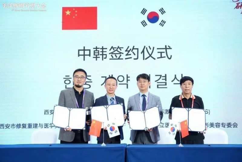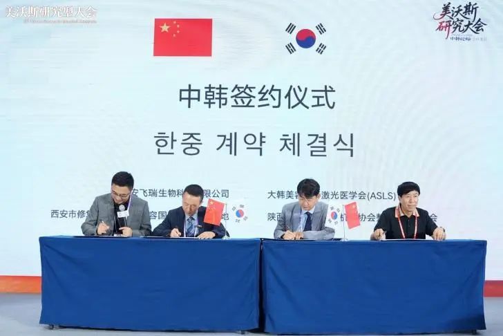 13位ASLS韩国专家就注射美容、激光美容、皮肤水光针以及皮肤再生疗法方面做了精彩学术演讲,会后同中方医生进行了深入的交流,学者们对此次中韩医美交流热情满满。为满足广大医美医生的愿望,封兴华教授作为陕西省非公立医疗机构协会整形美容专委会代表与大韩美容整形激光医学会(ASLS)、西安市修复重建与医学美容国际科技合作基地、西安飞瑞生物科技有限公司(FEIZER)签署了四方合作备忘录,共同携手,在发展中国医疗美容产业,医学人才培养教育和新技术培训领域以及促进中国医美国际交流方面进行合作,实现中韩医美交流常态化。