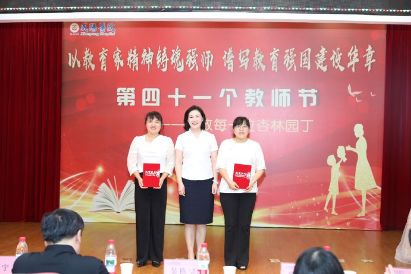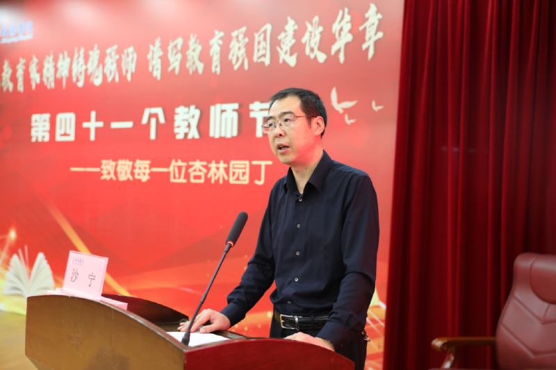为庆祝第41个教师节,深入践行"以教育家精神铸魂强师"的崇高使命,2025年9月9日下午,我院在脑科病院第三学术厅隆重举行2024-2025学年医学教育工作会议暨教师节表彰大会。院长姚晓峰、常务副院长吴栋梁、行政副院长兼工会主席沙宁、副院长韩晓芳、副院长詹珊珊、外科病院副院长姚春和、院长助理杨敏、院长助理巨涛、内科病院副院长张玉河、院长助理张家伟、工会副主席李鹏、精神心理病院副院长胡晓科、各职能部门负责人、临床带教老师、住培医师、硕士研究生、实习生、见习生代表等共200余人参会。大会在实习生于凯任、陈蕊露青春洋溢的主持中拉开帷幕。
