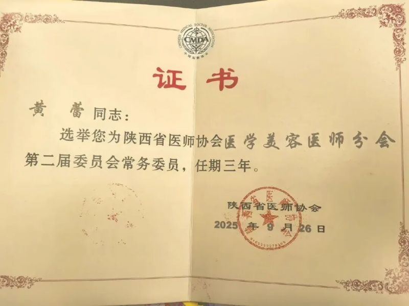 黄蕾主任当选陕西省医师协会医学美容医师分会常务委员
