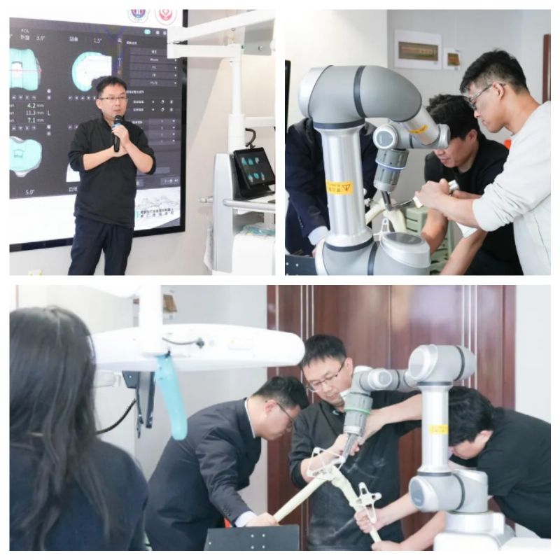 本次研习班的核心在于构建一个立体、闭环的学习体系,课程设计紧密围绕“精准”与“规范”展开。在规范实操环节中,杨佩教授进行了《骨科机器人辅助TKA手术模型骨操作讲解》,在模型骨上完整演示了从数据注册、三维规划到机械臂精准执行的全流程,将理论转化为可触摸、可复现的规范操作。我院骨科三病区李鹏主任结合本院实践经验,系统讲解了《骨科机器人辅助髋/膝关节置换手术操作流程》,分享了科室在围手术期管理、设备操作及应急处理中的宝贵经验,强化了区域内部的“造血”功能。