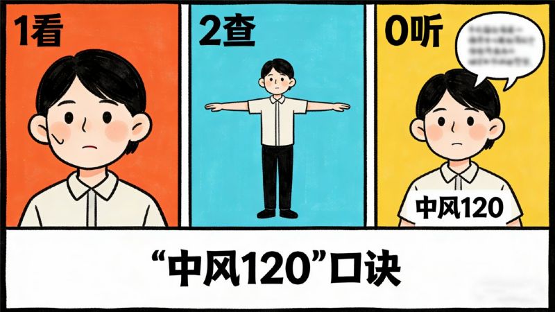 脑梗发作的黄金救治时间是6小时内,越早治疗,后遗症风险越低!记住“中风120”口诀,快速识别危险信号: