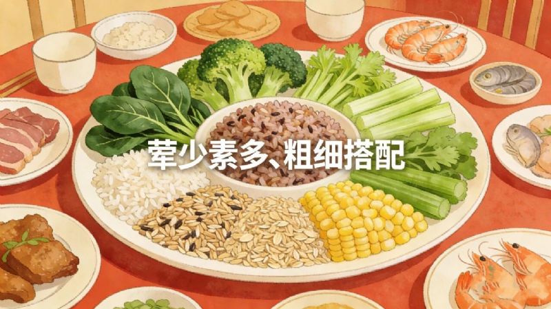 • 拒绝暴饮暴食:遵循“荤少素多、粗细搭配”原则,每餐吃到七八分饱即可;减少油炸、红烧等高油高盐菜肴,多吃绿叶菜和粗粮,帮助肠道蠕动。