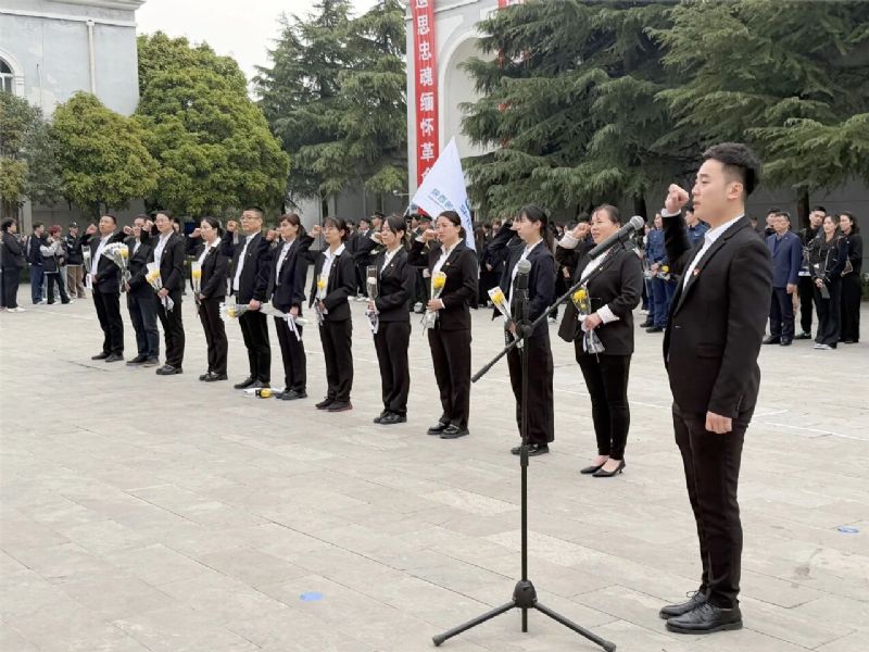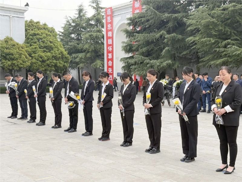 上午十时,烈士陵园松柏苍翠,丰碑巍峨。全体人员肃立纪念碑前,高唱《中华人民共和国国歌》。激昂的歌声回荡在陵园上空,诉说着对祖国的赤诚与对先烈的敬意。随后,全体人员低头默哀,一分钟的静默,承载着对英烈无尽的追思。默哀毕,党支部书记徐金强代表全体人员向革命英烈敬献花篮,他仔细整理挽带,深深地向纪念碑鞠躬,良久方才起身,寄托对先烈的无限追思与崇高敬意。