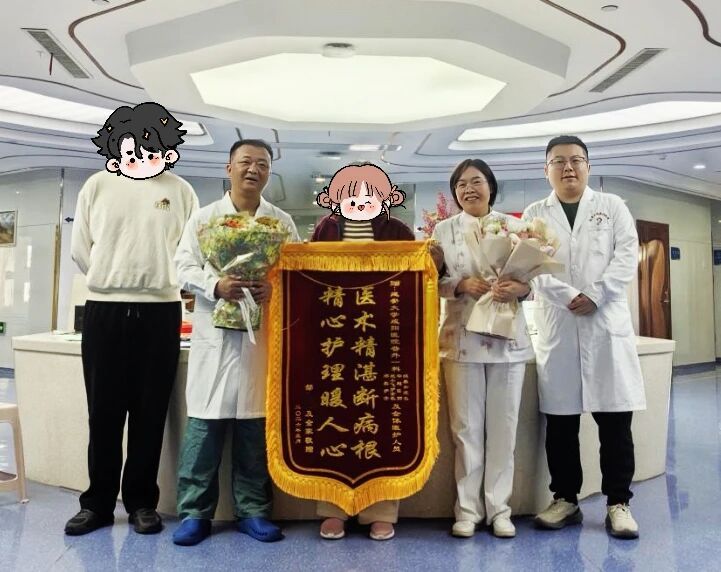 几天后,她再次出现在普通外科一病区护士站,手里捧着一面鲜红的锦旗与几束娇艳的鲜花。“医术精湛断病根,精心护理暖人心”——烫金的大字,在鲜花映衬下格外耀眼。“住院这些天,你们不仅治好了我的病,还像家人一样照顾我、安慰我,真的太感谢了!”