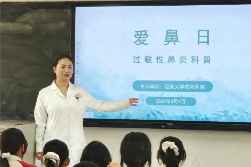 2026年4月11日是第24个“全国爱鼻日”。就在爱鼻日前夕,延安大学咸阳医院耳鼻咽喉科团队走进咸阳铁中第二初级中学,为50余名师生带来了一堂别开生面的爱鼻健康科普课。课堂上,孩子们的问题一个接一个,气氛轻松热烈,有学生课后感慨:“原来鼻子还有这么多学问!”