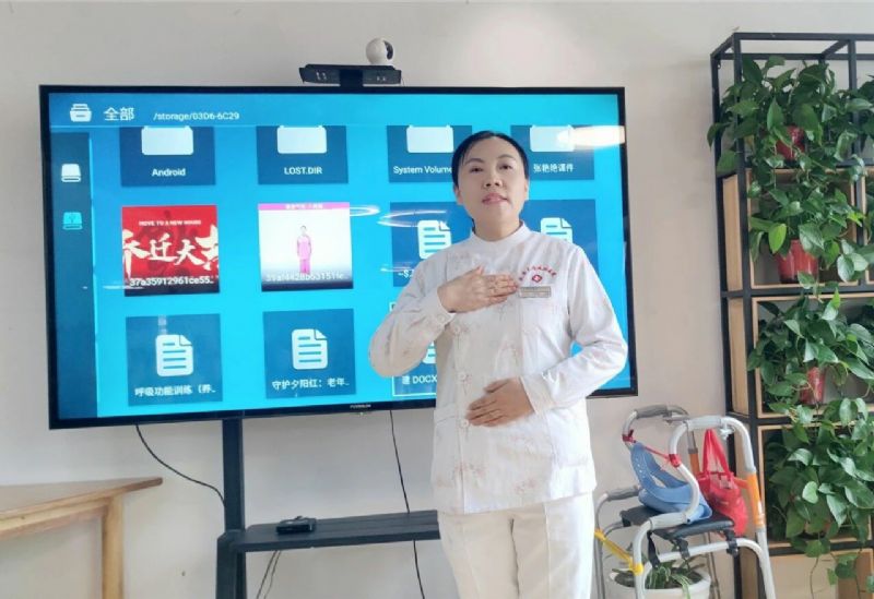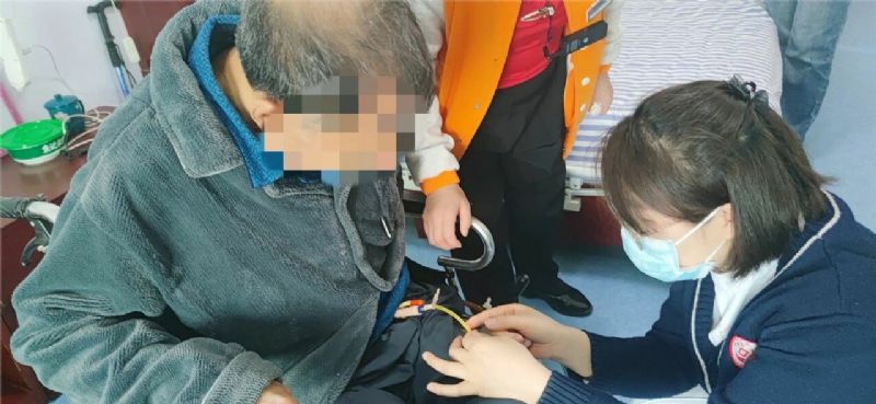 康复护理专业组耐心地教老人们呼吸功能训练的方法。“这个动作好,感觉胸口没那么闷了!”72岁的李奶奶练了几次后,惊喜地说。