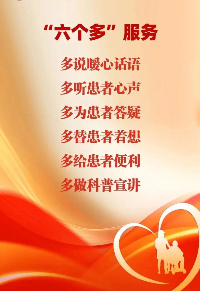 2025年2月份以来,省、市卫健委印发《关于在全市二级以上医院开展“六个多”服务的通知》,即多说暖心话语、多听患者心声、多为患者答疑、多替患者着想、多给患者便利、多做科普宣讲,延安大学咸阳医院深入贯彻落实“六个多”服务,将人文关怀融入医疗服务的每一个细节,让诊疗流程处处充满温度。