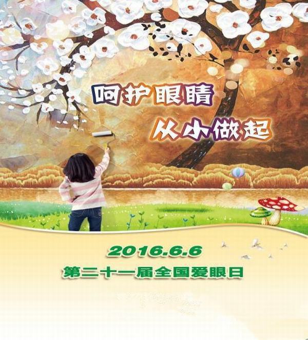 2016年6月,我们迎来了第21个全国“爱眼日”,今年“爱眼日”活动主题为“呵护眼睛,从小做起”。