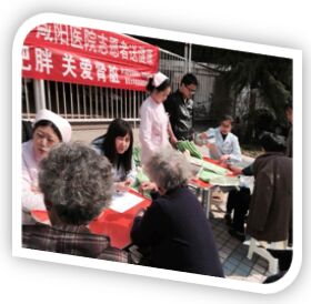 义诊活动现场,我们的医生正在耐心的向患者讲解肾脏疾病的相关知识,对于每一位前来咨询的群众,我们的医生都一一解答,生怕会遗漏掉任何一个问题;再看看我们专业护士,永远带着天使般的微笑,有的为前来义诊的群众测量血压,有的一边向患者发放我们精心制作的肾病相关知识宣传册,一边细心的广大群众讲解如何在日常生活中养成良好的生活习惯预防肥胖、肥胖的种种危害以及肥胖相关性肾病的防治……只是希望更多的人了解肾脏病,使肾脏病相关知识得到更好的普及,惠及更多百姓。