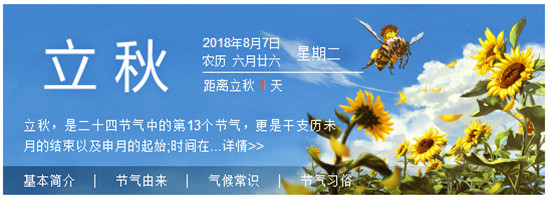 8月7日立秋,这预示着炎热的夏天即将过去,秋天来临。立秋又称交秋,虽有“秋老虎”的余威,但总的趋势是天气逐渐凉爽。秋风秋雨渐多,气候多变,故古语有云“多事之秋”,我们在立秋时节应该注意什么呢?