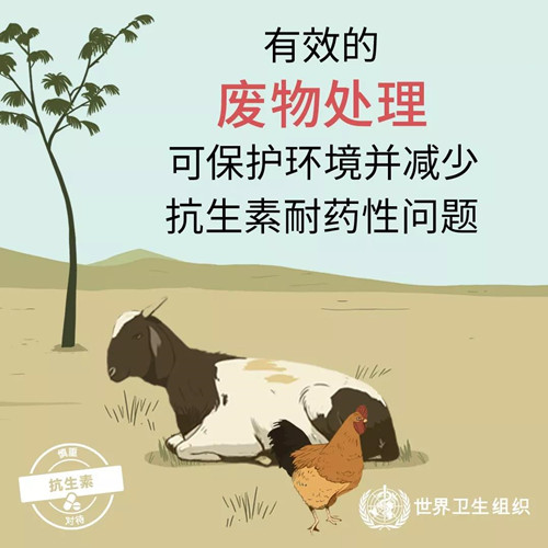 给动物接种疫苗以降低抗生素需求,并在有条件时使用抗生素替代物。