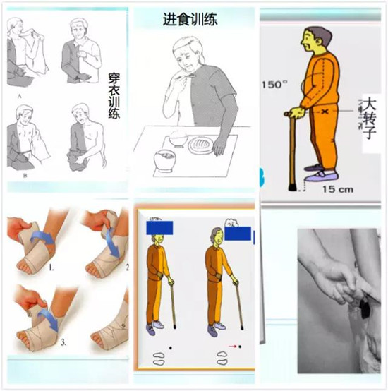 目标:通过学习使用“代偿性技术”,如轮椅、拐杖等,充分发挥健侧的潜能、尽量克服瘫痪带来的影响、争取最大限度的功能独立性,提高患者日常生活活动能力。