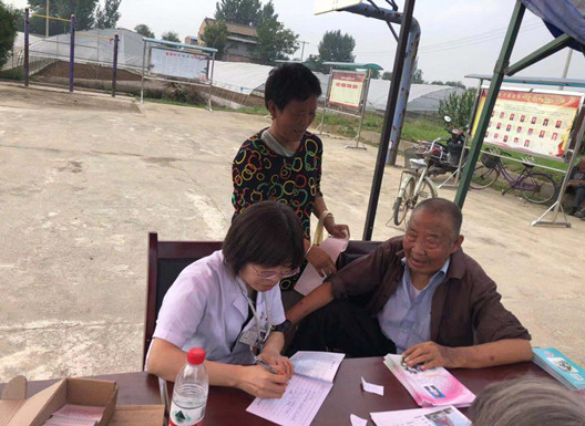上午9点,金城村的村民们早早就来到村活动广场上等候,现场前来参加义诊的村民络绎不绝。义诊医疗服务团队到达后,立即投入到义诊服务中。医疗专家们耐心解答村民们咨询的关于眼疾、心脑血管疾病腰腿疼痛的、消化系统方面疾病预防与诊治方面的问题,对患者健康保健给出指导意见。其他服务人员配合义诊专家免费为村民进行测血糖、量血压、心电图、健康教育、发放科普书籍等工作,慢性病管理科工作人员筛查和整理慢性病患者信息为后期的跟踪随访等系统化管理收集资料。中午12时整个义诊服务活动圆满结束,前来咨询就诊的群众达到300多人,筛查慢病患者80人次,发放健康科普书籍200多本,免费为村民做心电图130人次、血糖测量150人次、血压测压260人次、视力检测,眼底检查患者200人次,眼科医生筛查中发现有4名一直被白内障眼疾困扰需要进一步手术治疗的村民,当即安排救护车送院进一步手术治疗。