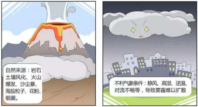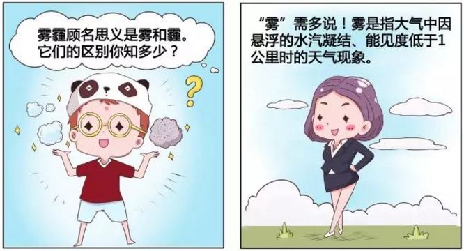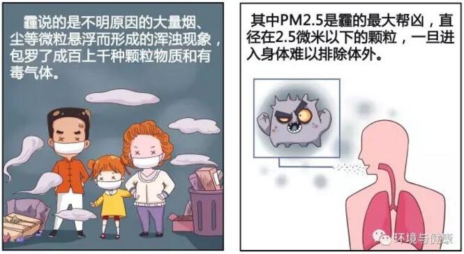 雾霾:是雾和霾的统称。雾和霾两种不同的天气现象,通常混合在一起出现,尽管在定义上有明确的区别界定,但在实际观测和研究中却并不容易区分,所以经常统称为“雾霾天气”。雾的组成比较简单,主要由大量悬浮在近地面空气中的微小水滴或冰晶雾滴组成,而霾的组成成分则非常复杂,有害物质通常大部分富集在细颗粒物(PM2.5)上,目前已知的主要成分包括:硫酸盐、硝酸盐、铵盐、重金属、地壳物质、含碳颗粒等。