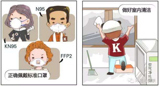 老人、儿童、孕妇及患有心、肺疾病的人群,在雾霾天气时,要避免户外活动,尽量减少出行,如果必须出门要采取带口罩等防护措施;外出回来后应及时清冼面部及裸露的肌肤。室内的PM2.5除了室内吸烟、燃料燃烧、烹调油烟等来源外,主要来源于室外,雾霾天气时尽量关闭门窗,减少外环境颗粒物进入室内。有条件的家庭可以使用空气净化器,减少室内颗粒物的污染。