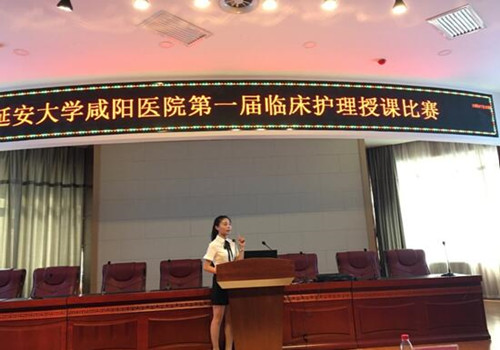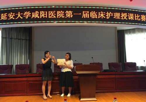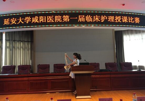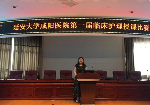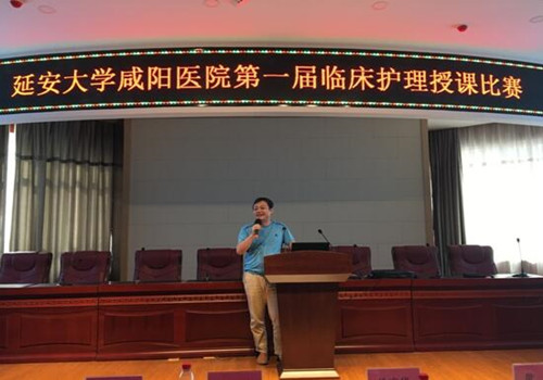 随着护理学科的发展和临床护理工作模式的变革,临床护理教学工作在提升护理队伍素质,提升护理质量方面发挥的作用日益凸显。为了提高临床护理人员的教学水平,锻炼讲授能力,同时给护士提供一个展现自我,提升自我的机会和舞台,促进我院临床护理教学水平不断提高,2017年6月27日下午14时在脑科楼学术厅,延安大学咸阳医院第一届临床护理教学比赛如期举行。莅临本次比赛现场的嘉宾有徐京华副院长,科教部韩晓芳主任,王丙聚副主任。比赛前徐京华副院长致开幕词,预祝第一届授课比赛圆满成功。担任本次比赛的评委有多次代表我院参加国家级授课比赛的强永春副主任、黄雷责任总医师,护理部杨敏副主任、王长宁总护士长、党文婷总护士长、宋春兰总护士长及教学管理委员会成员等12名老师。本次比赛参赛选手共12名,均由心脏系统,脑血管系统,外科系统,内科系统通过初赛、复赛各选拔出3名具有带教资质的老师参加总决赛。