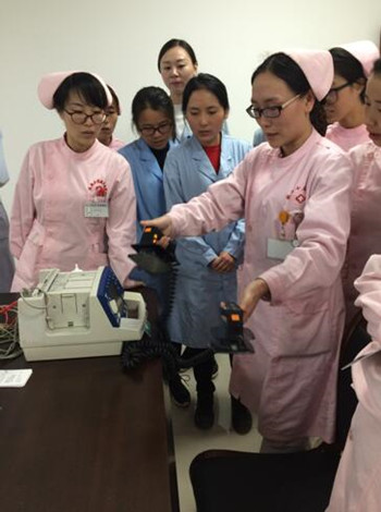 为达到创建三级甲等医院,对急救仪器达到人人百分之百掌握的指标,确保抢救病人时的及时有效,神经内科六病区特邀心脏内科三病区护士陈静,为全科医护人员讲解除颤仪的操作方法。