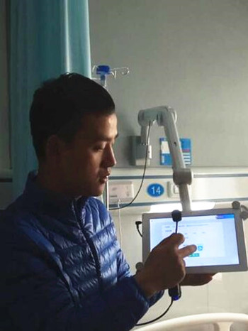 2017年11月23日早上8:00,延安大学咸阳医院床旁支付启动仪式在脑血管大楼一楼大厅举行,启动仪式由康彦文院长主持,全院临床科室护士长及信息管理部全体成员参加。康院长在致辞中说道,传统的缴费方式,患者或家属需要带着现金、银行卡到收费窗口排队缴费。如若遇家属上班还需请假过来缴费,不能赶赴过来的,只能等到第2天补交。因系统设置问题,难免会影响到患者的检查、治疗,甚至影响医患关系。如何优化缴费流程,缩短缴费时间,节约患者及家属的时间,提高患者满意度,一直是医院努力的方向,支付宝为我们提供了这一平台,其缴费不受时间、空间的限制,而我院的最大优势就是床旁智能系统,让患者能够在病床旁就完成支付,极大地为患者提供了方便。而支付宝支付只是我们启动线上支付的第一步,接下来,还将陆续提供多种线上支付方式,尽最大努力为患者提供方便。随后信息管理部的工程师在神经内科一病区对全院护士长进行了床旁支付的操作培训,以便于更好的对各病区患者及家属进行详细的讲解,得到了大家的交口称赞。