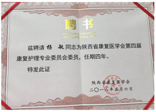 热烈祝贺我院杨敏主任、宋春兰总护士长当选为陕西省康复医学会康复护理专业委员会委员