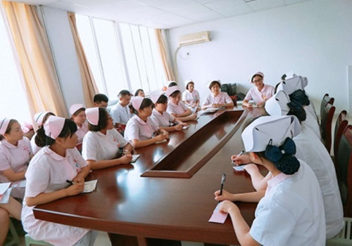 在接下来的讨论环节中,实习学生热情高涨,不断地向老师提问求解,会场洋溢着浓郁的学习气氛。消化内科护士长胡艳辉做了意见补充,使护理计划更加完善合理,护理目标更加明确,护理安全防范措施落实关注点更加明晰。各位护士长结合自身丰富的工作经验,各抒己见,围绕该患者的护理、健康指导及常见并发症的防范观察,提出了自己的见解,及疾病治疗护理的前沿知识。内科病院陈英总护士长对此次查房给予了充分的肯定,对专科性问题给予指导,并提出今后的护理教学查房将以多种形式展开,为推动我院护理质量提升夯实理论基础。