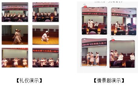 在第二环节的汇报演示中:“智、慧、礼、仪、梦、想、毅”7个团队通过基本礼仪、站姿、坐姿、蹲姿、电话礼仪、接待礼仪等9个方面,细微深入的展示着护士礼仪风采。得体大方,端庄整洁的白衣天使,将沟通中的语言艺术展现的美轮美奂,特别是我们的男护团队,为此次提升班增添了一抹别样的色彩,他们阳刚中不失温情,粗犷中不失细腻,以他们独特的风采展示了我们护理人不一样的情怀。