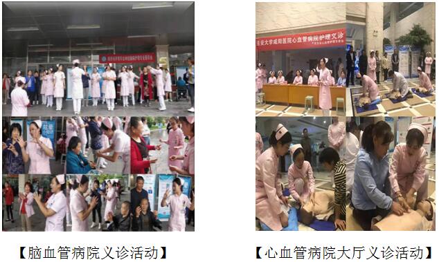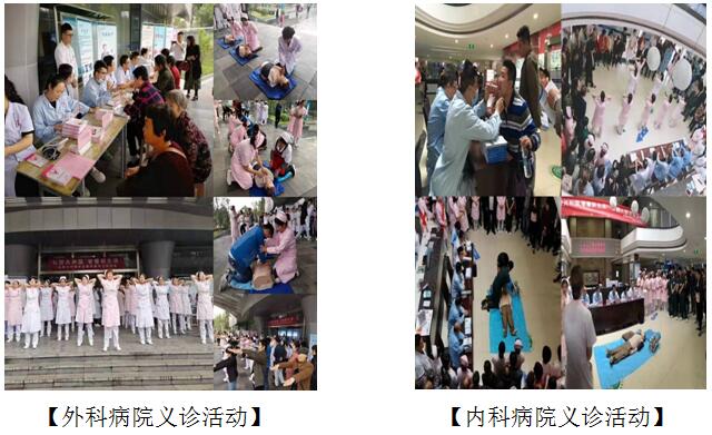 随后,各分院在总护士长的带领下于各分院门诊大厅进行了专项义诊活动。各专业委员会积极组织,认真筹备,根据医院实际情况准备所需材料,展板、器材或演示模具等,通过发放资料、现场教授、咨询、健康教育、模拟演练等多种形式为群众传播健康知识。在各义诊点,经验丰富的医务工作者们,为患者及家属测量血压,根据其提出的具体问题给予耐心细致的解答并根据个体差异提出了合理的健康指导以及相关注意事项。期间,急诊科、心脏科的护士分别为现场的患者及家属分别演示了单、双人心肺复苏术,旨在提高全民在突发事件中的自救互救技能。接下来,呼吸内科、肿瘤胸外科、疼痛科、骨科、神经内科分别演示了呼吸操、护颈操、健脑操、施氏十二字养生功,以实际行动普及健康知识。