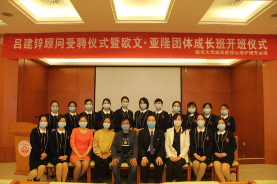 4月9日,延安大学咸阳医院心理护理专业组,在心脏楼第一学术厅举办了吕建锌顾问受聘仪式暨欧文▪亚隆团体成长班开班仪式。特邀咸阳市心理卫生协会吕建锌会长、冯健副会长、吴丽娟秘书长、延安大学咸阳医院张海涛院长出席本次仪式。