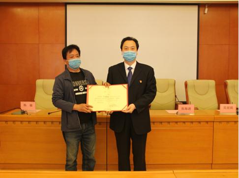 最后,吕建锌会长向张海涛院长及我院援鄂英雄杨文静主管护师赠送心理学书籍,祝愿他们能够工作顺利、生活美满。