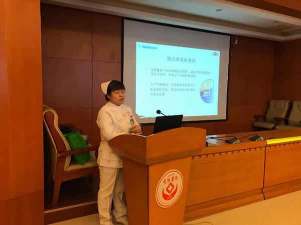 在胰岛素泵的治疗过程中,因各种原因出现胰岛素泵报警,让患者产生紧张情绪或焦虑,这时需要护士及时解除报警并向患者解释,消除患者紧张情绪。为此,首先由血液内分泌科省级专科护士刘甜甜为全体糖尿病联络员讲解胰岛素泵常见报警的原因及处理,授课中刘甜甜护士结合案例详细讲解,为糖尿病联络员解开了困扰大家的很多疑惑。
