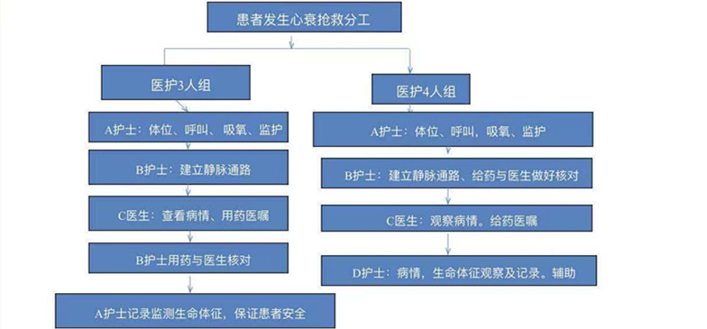 心血管内科三病区护理团队针对患者发生急性左心衰,提出了心衰抢救有效分工及心衰早期识别及预防的护理难点,通过文献的查阅、指南的查阅,难点被一点点的解答。王娟护士将查找心衰最新指南中取消酒精湿化吸氧、四肢轮扎的原理做了详细节解读;陈娜护士提出了人文关怀对于急性心衰患者抢救时的重要性;通过讨论科室制定了抢救分工流程图,形成了最终的标准化流程,分为夜间3人组及日间4人组。分工明确、有条不紊,为心衰患者的抢救赢得宝贵时间。各科护士长及护理骨干针对心衰患者的护理、识别及工作中的经验展开了激烈讨论与经验分享。提出了预见性护理的重要性,并举例说明因为预见性护理而及时拯救患者生命的工作经历,提升了我们在护理危重患者时的预警能力。