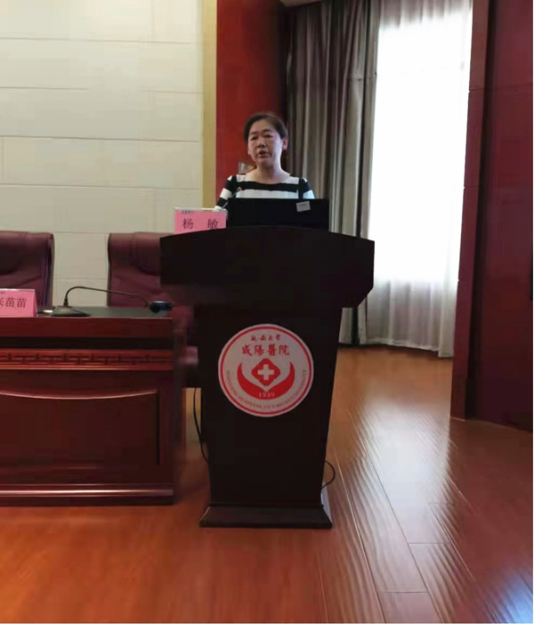 培训伊始,杨敏主任代表医院向来我院学习的实习生表示热烈欢迎。她强调岗前培训是衔接学校与医院的桥梁;通过岗前培训学生们可以消除进入临床的顾虑与担忧,增加实习的信心。接下来她就延安大学咸阳医院概况及“仁爱为本,慎独为魂”的护理理念进行了授课。