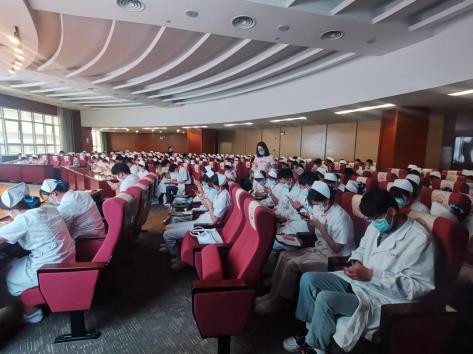 为做好实习生规范化管理,提高其基本专业素养和服务意识,保障护生实习期间的医疗安全,2022年7月18-19日,延安大学咸阳医院护理教学管理委员会在脑血管病院第三学术厅举行了“2022-2023年度护理实习生岗前培训”。护理部杨敏主任、教学管理委员会主任委员党文婷总护士长、医院感染控制办公室干事王佳及教学管理委员会部分委员出席了开幕式,现场共计200名护理实习生参加培训。