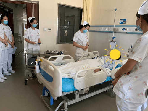 首先,由护师李姗姗对疾病相关知识进行详细的讲解,并对患者的基本资料、病史、诊疗经过进行了阐述,根据患者的目前情况提出护理诊断并采取相应措施。随后进行床旁查体,经过规范专业查体及评估,再次进行讨论及分析。